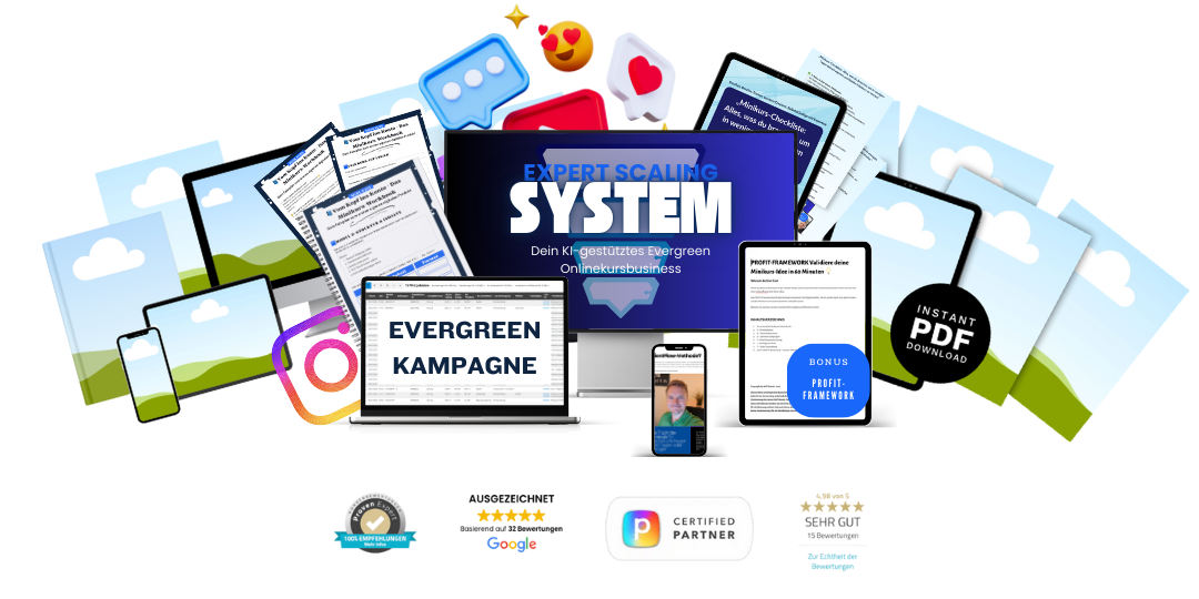 Das komplette System (Alle Kurse) + Community + 80% Partner-Provision.